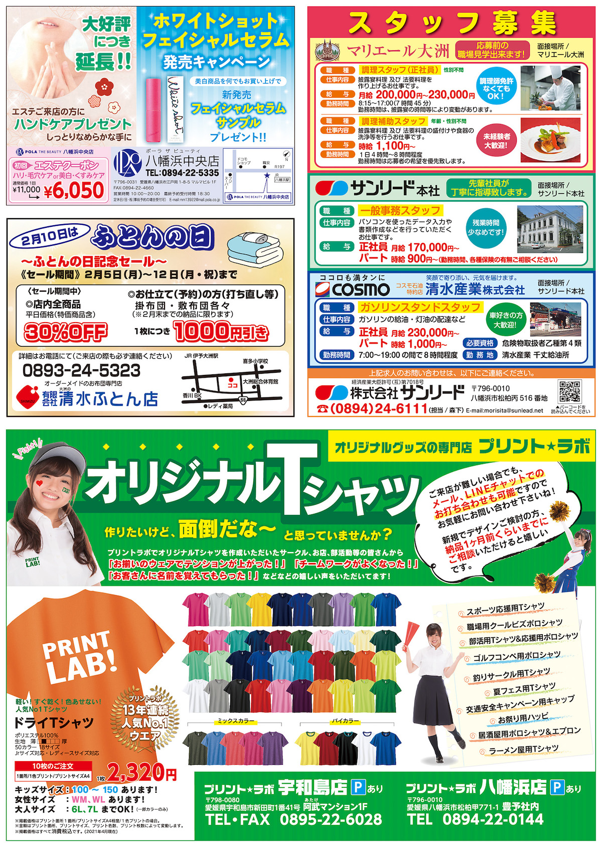 広告 愛媛南予の集合広告 「ほっぷ」 2024年2月号発行! 2024年2月5日 愛媛南予の集合広告 「ほっぷ」 2024年2月号発行! 2月5日折込の集合広告「ほっぷ」。 地域のお店、会社の情報をご紹介してます。 新聞購読していなくても、バックナンバー含めて、こちらからでも見れますよ〜 愛媛県南予の集合広告「ほっぷ」WEB版 Facebook postはてブLINEPocketFeedly
